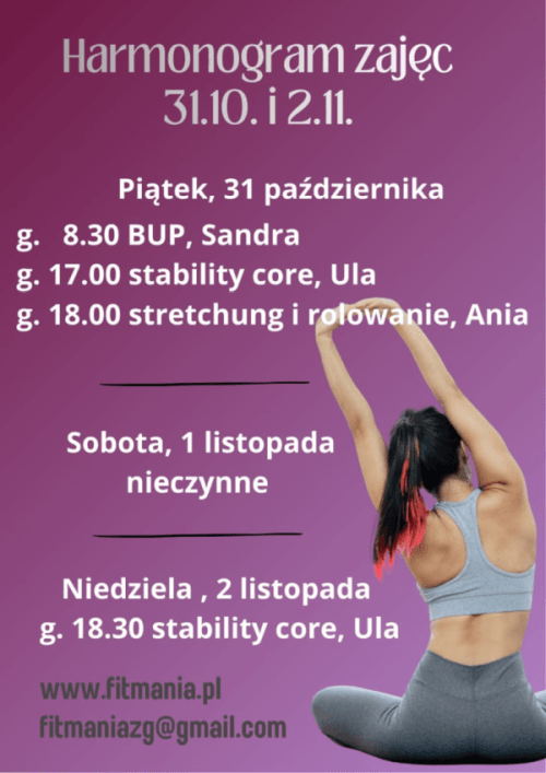 Zajęcia wzmacniają pracę mięśni posturalnych, głęboko położonych, całego centrum tułowia oraz pracę naszego serca i układu krwionośnego. Celem zajęć jest dbanie o korektę postawy, mocny brzuch i stabilną postawę ciała.